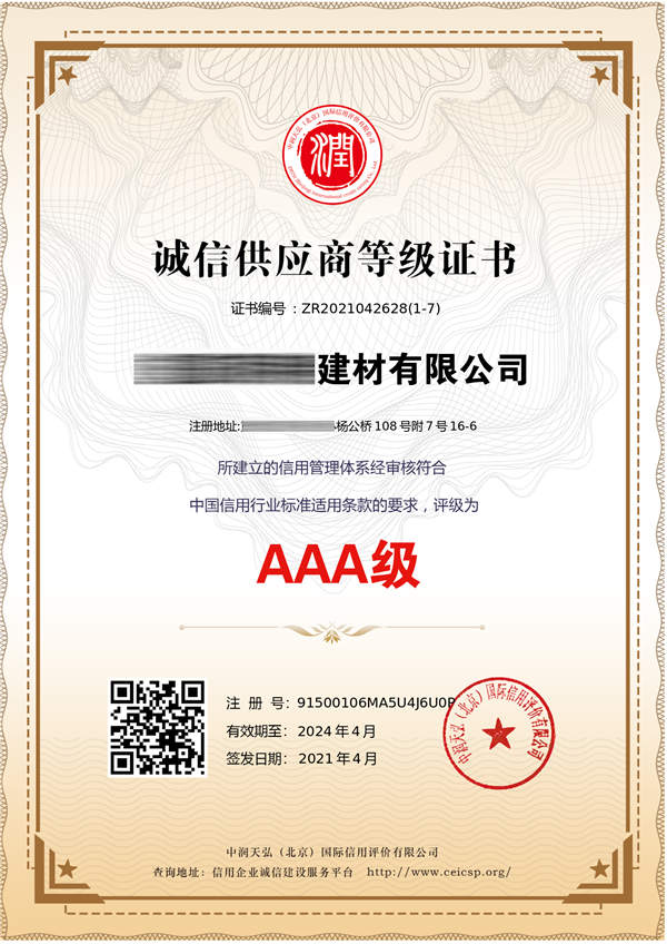 AAA企業(yè)信用評(píng)級(jí)網(wǎng)是從事企業(yè)認(rèn)證咨詢、各行業(yè)榮譽(yù)證書辦理的網(wǎng)站,認(rèn)證主要包含企業(yè)AAA信用等級(jí)證書、ISO體系認(rèn)證、服務(wù)認(rèn)證等認(rèn)證產(chǎn)品。出證快、價(jià)格優(yōu)。 企業(yè)AAA信用等級(jí)證書主要包含:AAA企業(yè)信用等級(jí)、AAA企業(yè)資信等級(jí)、AAA重合同守信用、AAA質(zhì)量服務(wù)誠(chéng)信企業(yè)、AAA誠(chéng)信經(jīng)營(yíng)示范單位、誠(chéng)信企業(yè)家、誠(chéng)信經(jīng)理人、AAA重質(zhì)量守信用、AAA重服務(wù)守信用、AAA誠(chéng)信供應(yīng)商等。我們將一如既往繼續(xù)努力,能夠和您合作是我們的榮幸!AAA企業(yè)信用評(píng)級(jí)網(wǎng)本著“誠(chéng)信、專業(yè)、優(yōu)質(zhì)、高效”的宗旨為廣大客戶提供全方位的認(rèn)證咨詢服務(wù),本公司愿與廣大的新老客戶真誠(chéng)合作、攜手共進(jìn)! |